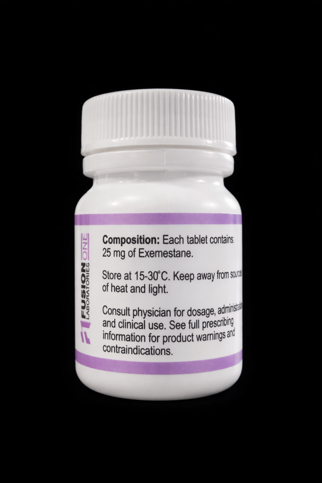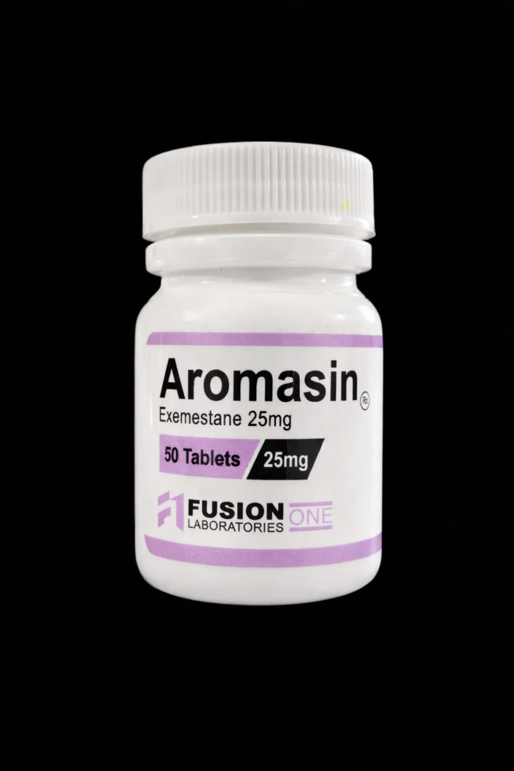 Fusion One Laboratories Aromasin (Exemestane) 25mg. A premier suicidal aromatase inhibitor for permanent estrogen enzyme binding. 50 tablets per bottle. Ideal for on-cycle management and advanced PCT.