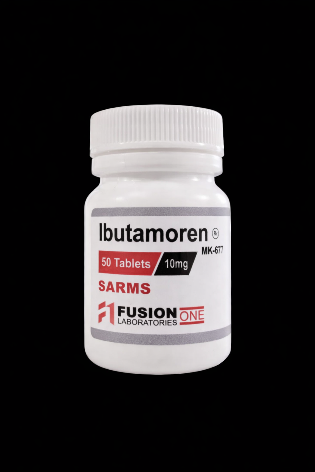 Fusion One Laboratories Ibutamoren (MK-677) 10mg. A premier growth hormone secretagogue designed to elevate natural GH and IGF-1 levels. 50 tablets per bottle. The ultimate tool for superior recovery, muscle fullness, and deep sleep.