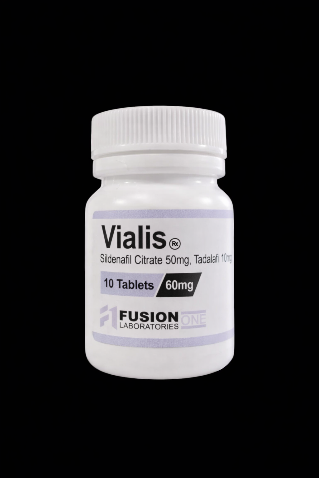Fusion One Laboratories Vialis. A high-performance hybrid of Sildenafil (50mg) and Tadalafil (10mg). 10 tablets per bottle. Engineered for rapid onset and 36-hour lasting endurance. The ultimate solution for male performance.